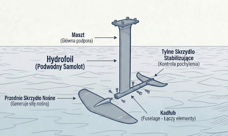 Osobną rewolucją ostatnich lat jest foil, czyli hydrofoil montowany pod deską. To skrzydło hydrodynamiczne na pionowym maszcie, które przy odpowiedniej prędkości unosi całą deskę nad wodę. Surfer pływa wtedy kilkadziesiąt centymetrów nad powierzchnią, co daje niesamowite wrażenie lewitacji i pozwala osiągać ślizg nawet przy bardzo słabych wiatrach. Foiling wymaga sporych umiejętności i drogiego sprzętu, ale zdobywa coraz więcej fanów również w Polsce.
