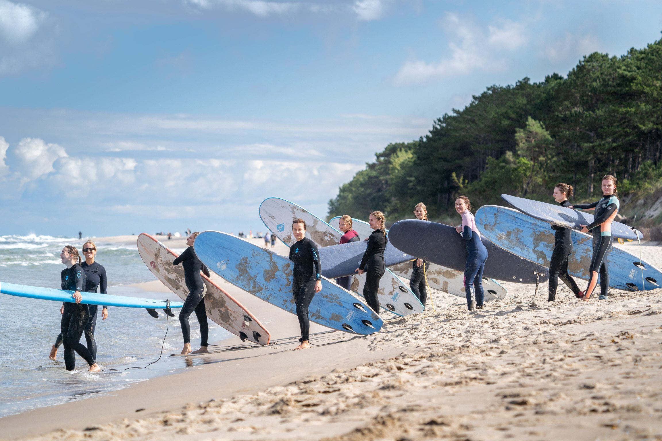 - 24 godziny zajęć surfingowych i uzupełniających z instruktorem w małych grupach