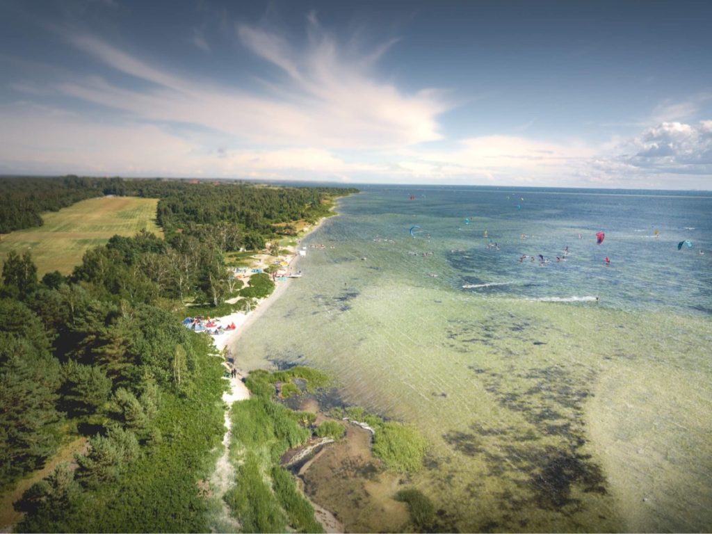 Gdy przy brzegu wiatr nie jest najmocniejszy przy brzegu lub wieje “nie równo”, wsiadamy w nasz 250kM ponton i płyniemy 5 min na równie płaski, płytki i niezatłoczony spot na płyciźnie dalej od brzegu. Tam warunki są idealne do nauki i wodnych szaleństw!