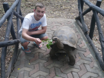 Udało nam się natomiast wybrać na całodniową, skondensowaną wycieczkę 4 w 1 (tego dnia też wiało, ale tu musieliśmy złożyć rezerwację kilka dni wcześniej;) Wynajęliśmy busa i Paweł zabrał nas do Jozani Forest, czyli rezerwatu gdzie między innymi można zobaczyć małpy, na farmę przypraw (Zanzibar słynie ze swojej wanilii, cynamonu, goździków itd.), popłynęliśmy również na Prison Island, wysepkę z wielkimi żółwiami lądowymi wielbiącymi szpinak oraz przeszliśmy wzdłuż i wszerz Stone Town. Co poniektórzy z nas wykorzystali tę okazję kontaktu z cywilizacją i „zaliczyli” miejscowego lekarza w celu opatrzenia mniejszych i większych ran;) Miałam utrzymywać, że wszystkie uszkodzenia powstały podczas heroicznych walk z falami, a nie podczas zakrapianych imprez, więc tego będę się trzymać;))