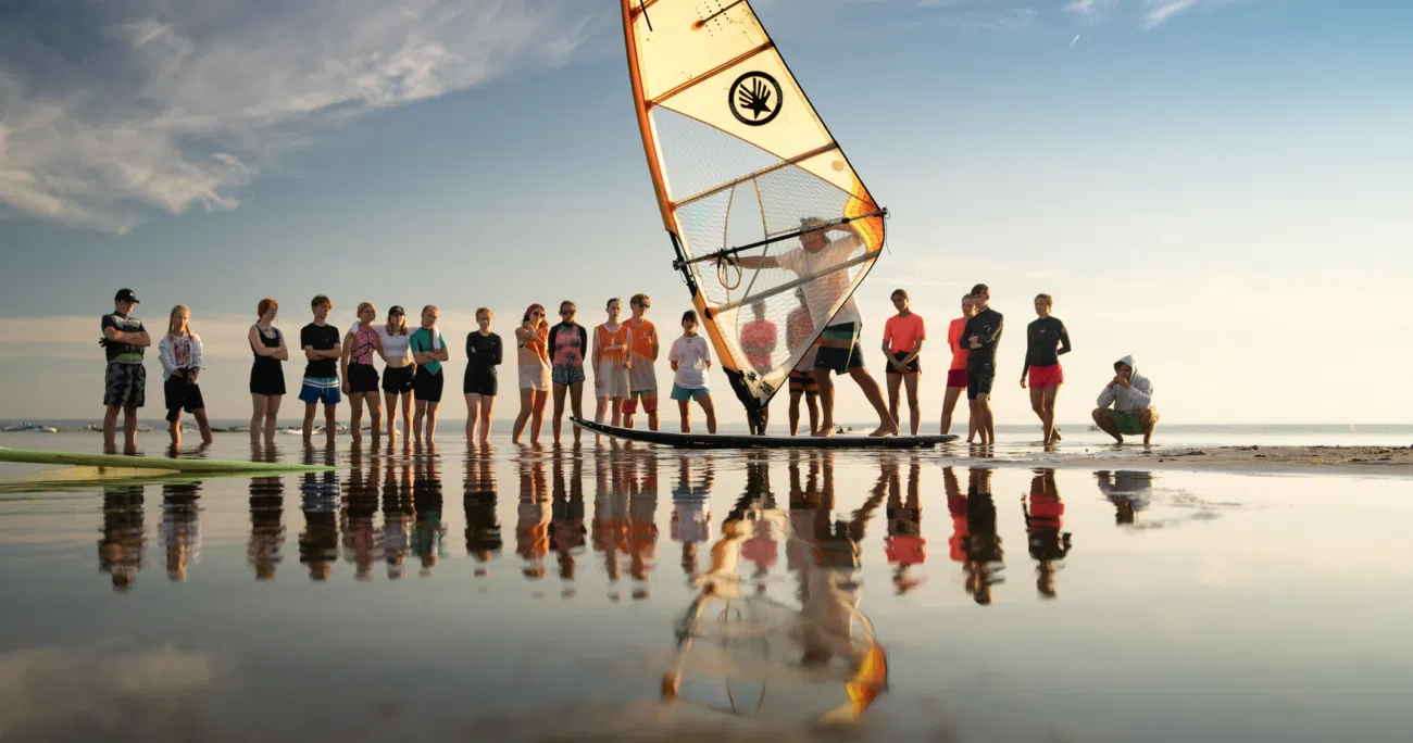 32 godziny jazdy na windsurfingu w małych grupach (początkujący + średnio zaawansowani) + masę ekstra atrakcji: SUP, skimboard, wakeboard, mega SUP, rejsy szybkim pontonem RIB, pierwsze szlify w kite’owaniu, a nawet elementy surfingu.